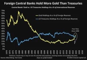 With mounting fiscal deficits, geopolitical instability, and the lingering effects of years of monetary expansion, gold has reclaimed its place as the world’s most trusted collateral. The irony, of course, is that the same easy-money policies that once rescued Wall Street are now driving the very architects of unlimited credit expansion into hard assets.